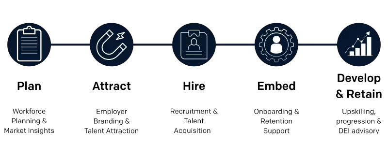 We have created a joined-up model that blends our recruitment expertise with practical, data-led consultancy across the full employee lifecycle - helping our clients make better people decisions, reduce hiring risk, and build stronger teams.